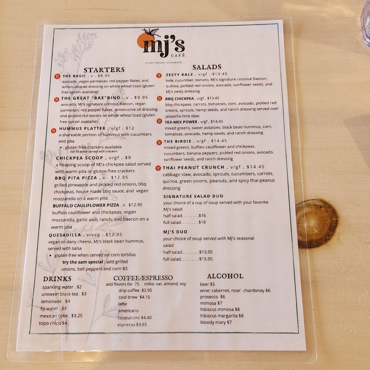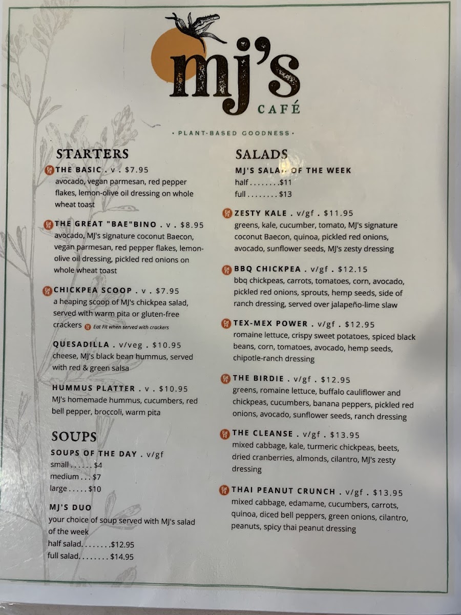 kale, arugula, crispy chickpeas, avocado, dried cranberries, MJ's signature coconut BAEcon, granny smith apples, pumpkin seeds, citrus vinaigrette, and your choice of goat cheese or vegan feta.